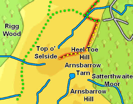 Arnsbarrow Tarn can be reached from Grizedale by following the route to Top o'Selside at our sister site Storm-Crow, then heading east from the summit.