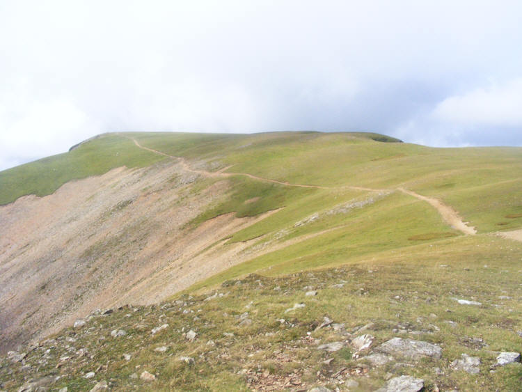 Here we see the large grassy plateau that makes up the summit of Grasmoor, looking west from the top of Lad Hows.