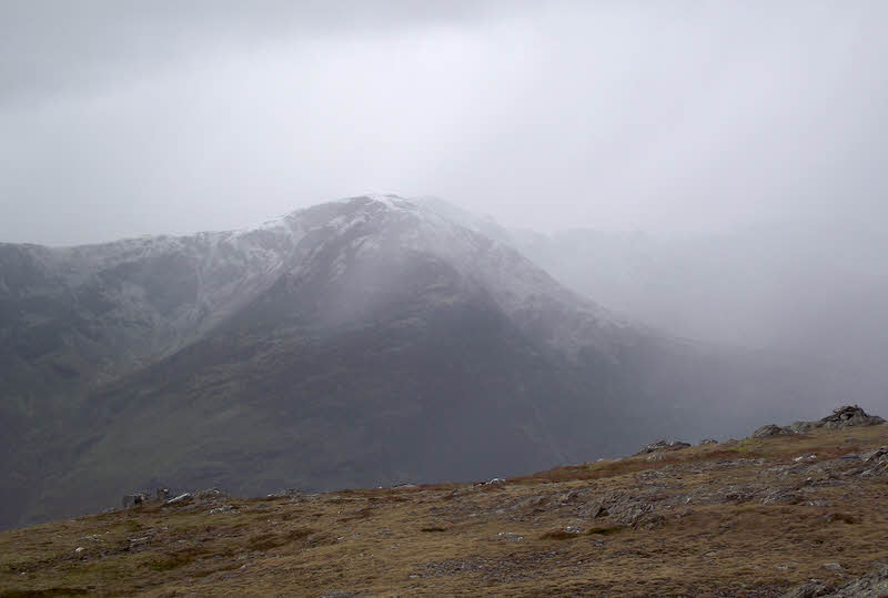 A view of High Stile after an unexpected and very localised snow storm, seen from the slopes of Robinson.