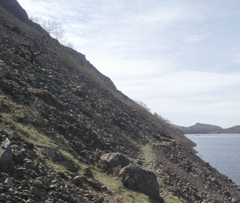 The path across the eastern end of the Wastwater Screes - here the stones are smaller but most of the path is still well defined.